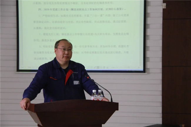 仲維濱強(qiáng)調(diào),一要提高政治站位,堅(jiān)決做到“兩個(gè)維護(hù)”認(rèn)真落實(shí)集團(tuán)黨委關(guān)于疫情防控工作的決策部署,努力抓好疫情防控和復(fù)工復(fù)產(chǎn)各項(xiàng)工作。二要要認(rèn)真履行全面從嚴(yán)治黨第一責(zé)任人職責(zé),緊緊圍繞新時(shí)代黨的建設(shè)總要求開展全年各項(xiàng)工作。三要認(rèn)真學(xué)習(xí)貫徹《中國(guó)共產(chǎn)黨國(guó)有企業(yè)基層組織工作條例(試行)》,經(jīng)常性的開展自查、整改、對(duì)標(biāo)工作,不斷夯實(shí)強(qiáng)化基層黨建基礎(chǔ)化和標(biāo)準(zhǔn)化工作。四要堅(jiān)持黨建融入中心,重點(diǎn)要選取一些難度跨度較大的、融入中心緊密的、黨員參與度高項(xiàng)目開展攻關(guān)立項(xiàng)。五要縱深推進(jìn)黨建責(zé)任制督導(dǎo)與量化考核。要合理運(yùn)用好黨員先進(jìn)性量化評(píng)定這一重要抓手,以工作實(shí)效評(píng)判黨員,用黨員在全體職工中的綜合績(jī)效排名來評(píng)價(jià)黨員的先進(jìn)性,進(jìn)一步發(fā)揮各支部的戰(zhàn)斗堡壘作用。