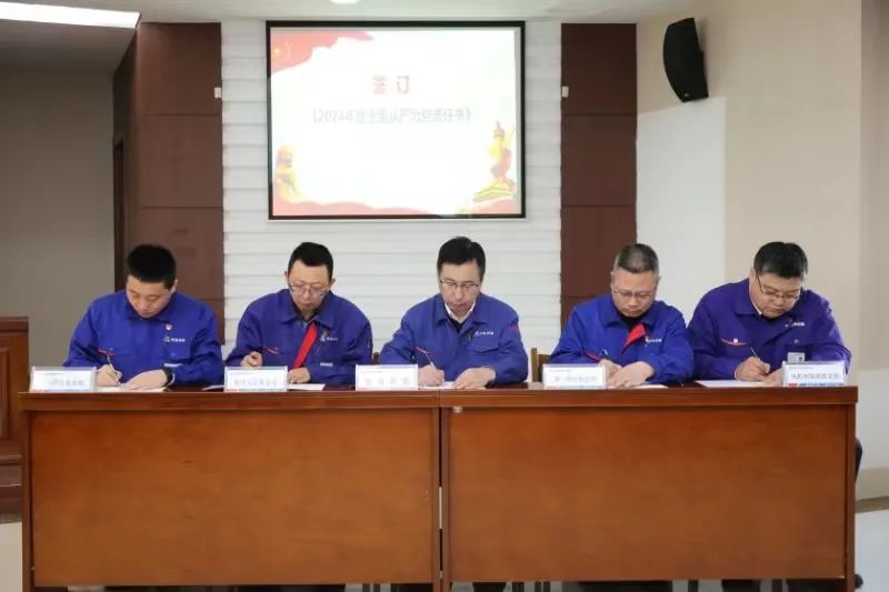 李夢啟代表公司黨委,與直屬黨組織負(fù)責(zé)同志簽訂《全面從嚴(yán)治黨責(zé)任書》。